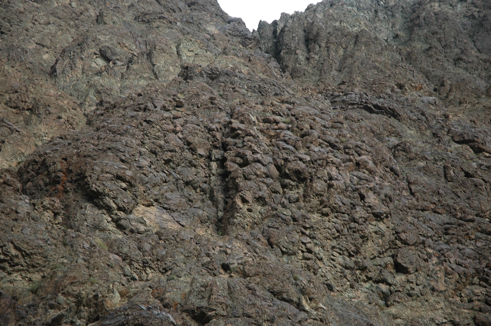 Across the Karakorum fault is the Shyok suture zone (my favorite part of the trip). The Shyok suture zone is a thick mélange considered by many to be a remnant of a Cretaceous back-arc basin separating the Ladakh island arc from the Karakoram continental arc and thus the Asian margin. The suture zone is primarily an ophiolite mélange, with mafic volcanics and minor amounts of sediments incorporated in the mix.  Within the Shyok suture zone we find many of the classic parts of a supra-subduction ophiolite complex with exception of the sheeted dikes and layered gabbros. However, like many ophiolite complexes the lack of these components might imply either that they did not form as part of the oceanic lithosphere or that were removed during tectonic erosion during continued subduction and collision, which appears to be the case in the Shyok suture zone.
