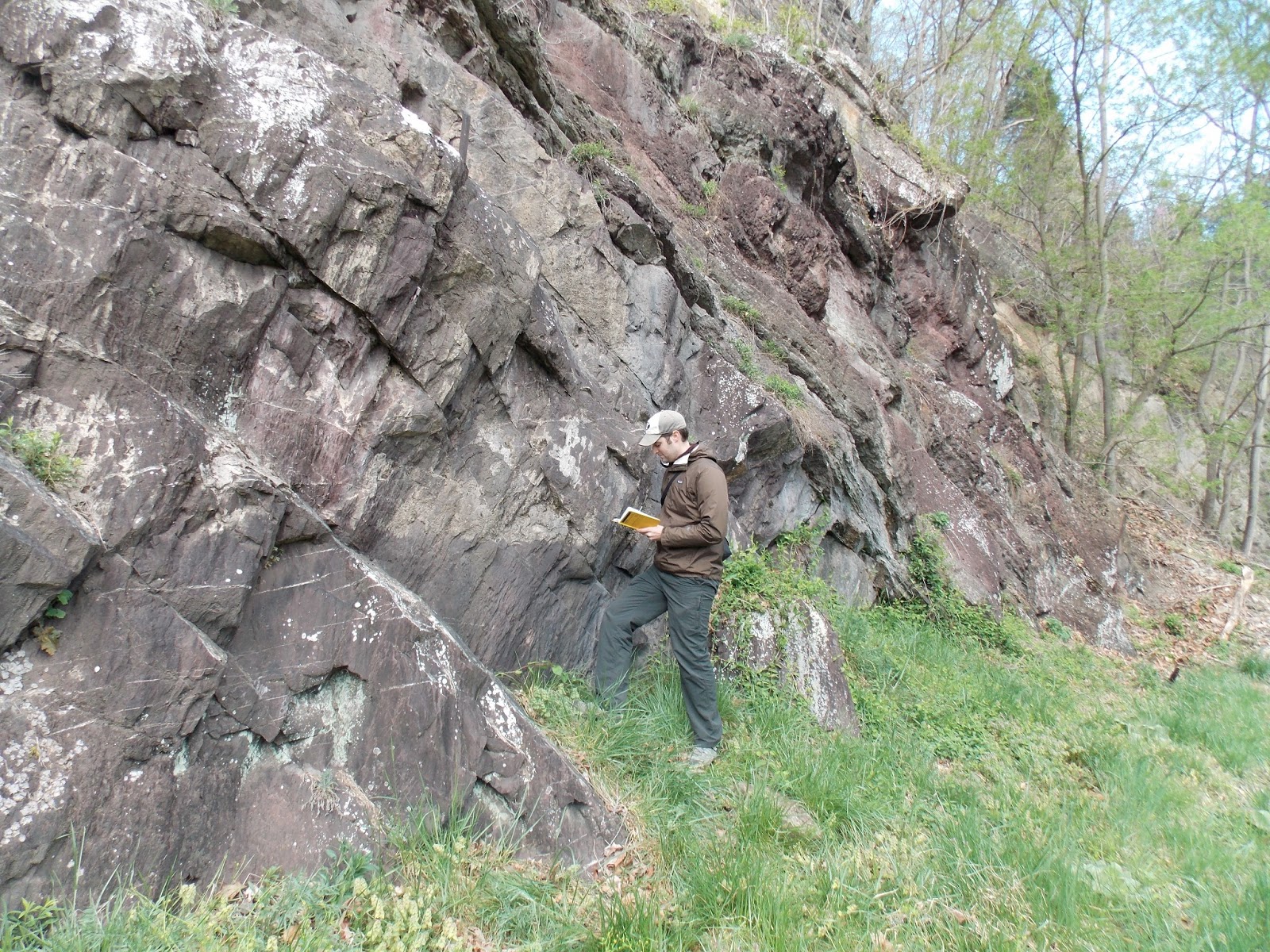 Kellen Gunderson working the outcrop at Round Top, Maryland.